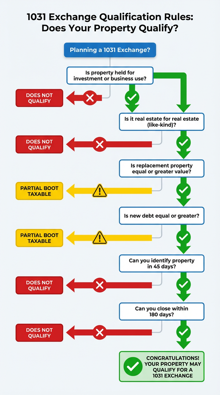 Have questions? Consult with a qualified tax professional and Qualified Intermediary before proceeding with a 1031 exchange.
