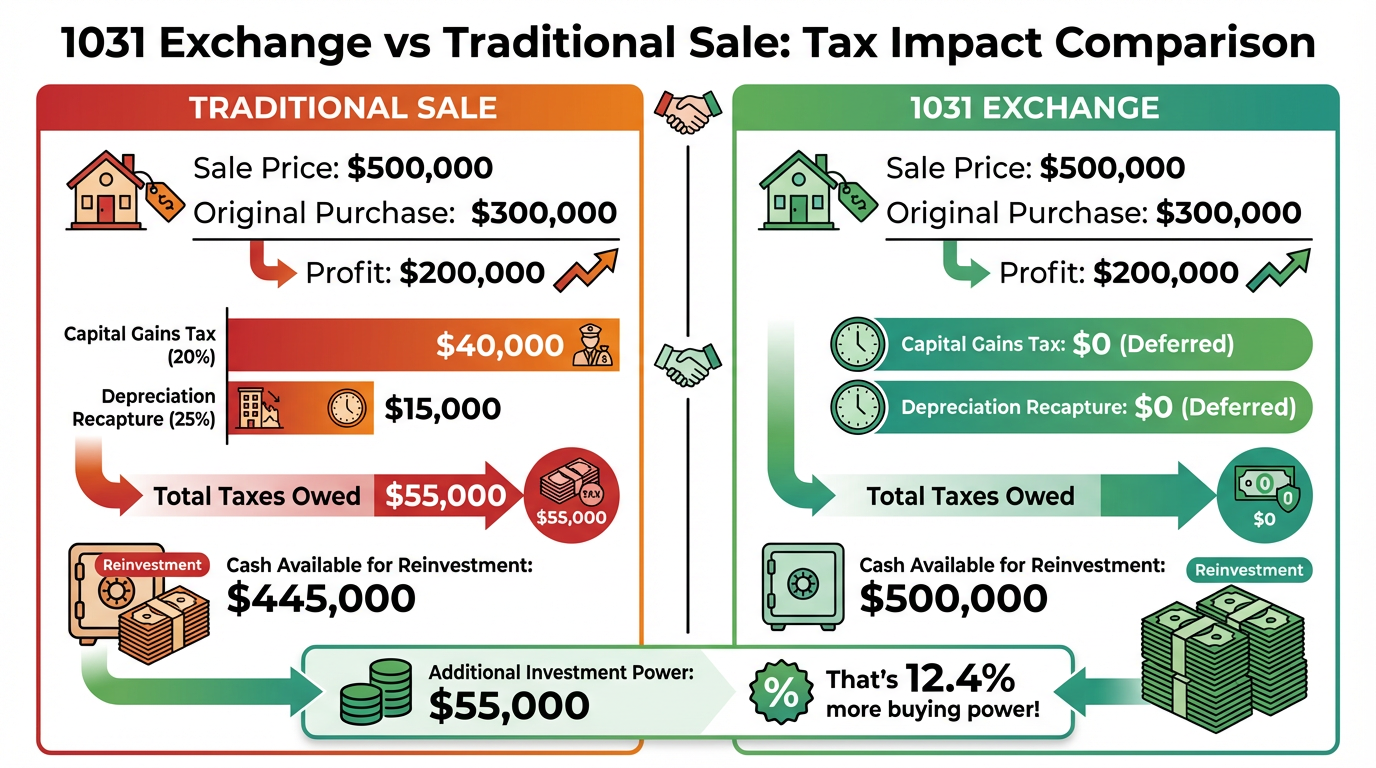 Imagine selling a $500,000 rental property and keeping all $500,000 to reinvest—instead of paying $55,000 in taxes. That's the power of a 1031 exchange.